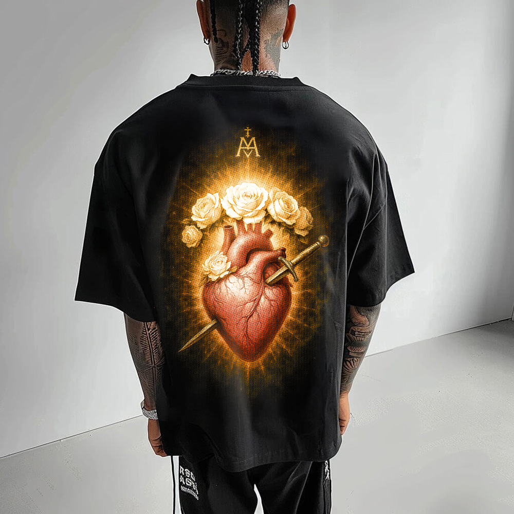 Tricou Negru Oversize Immaculate Heart Radiance